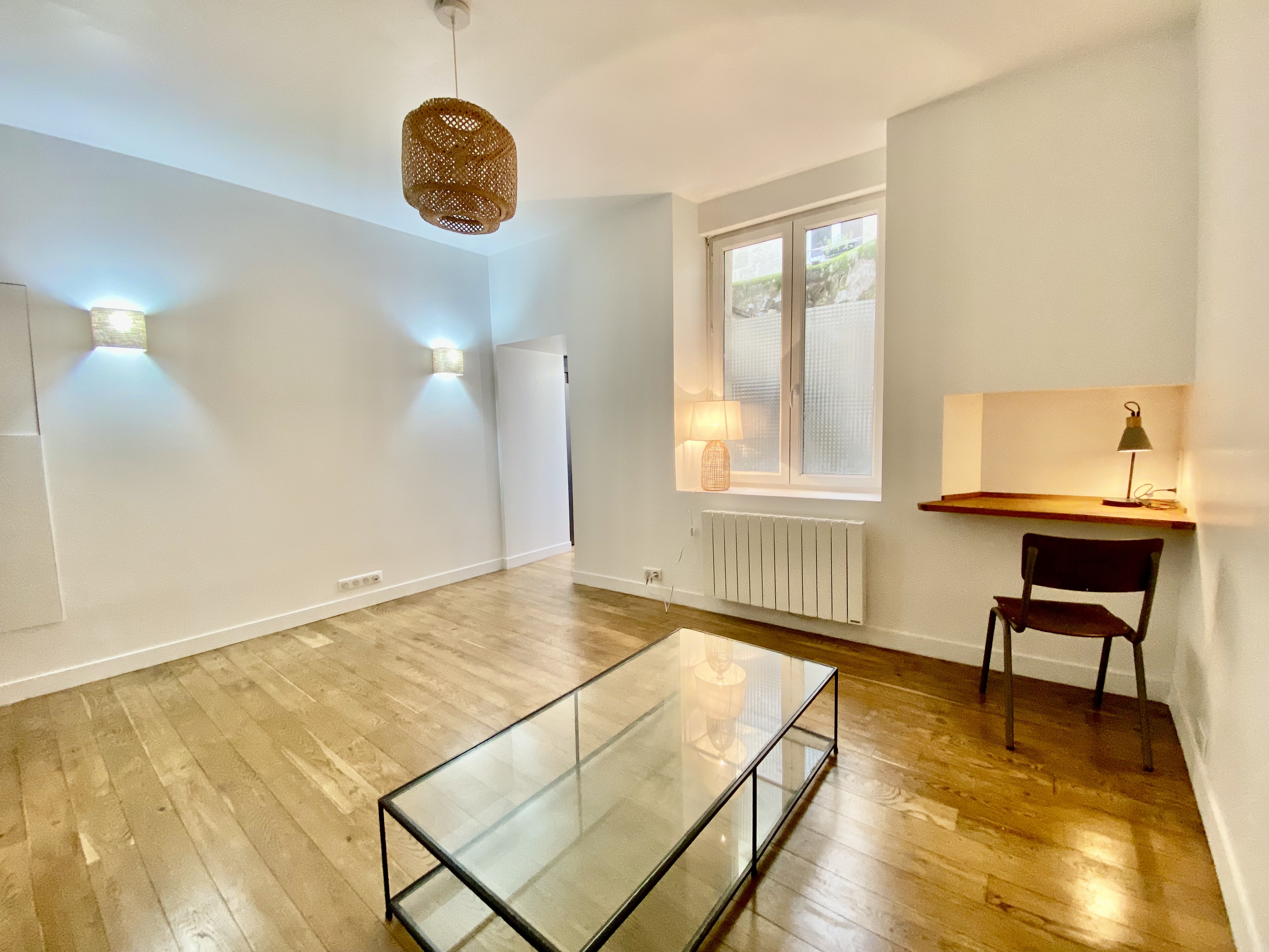 Adorable T2 Traversant avec terrasse,  entièrement rénovée avec beaucoup de goût  dans petite immeuble pierre.
